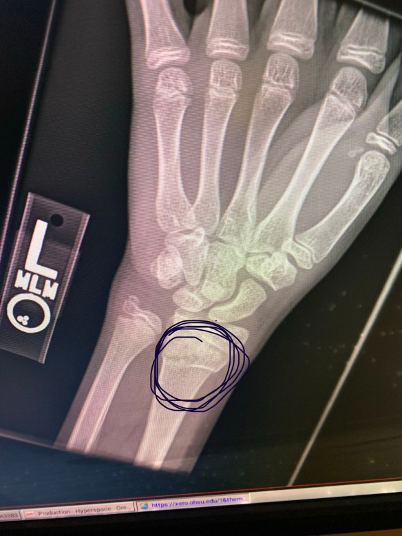 Buckle fracture of his wrist.